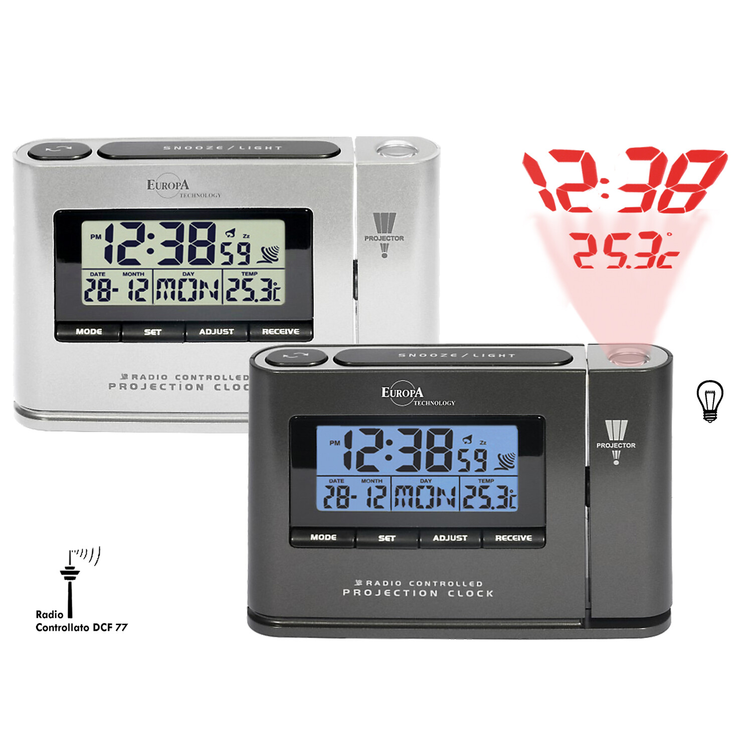 SVEGLIA AL QUARZO LCD, RADIOCONTROLLATA CON PROIEZIONE